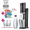 SodaStream Crystal 2.0 Wassersprudler-Set Promopack mit CO2-Zylinder, 2x Glaskaraffen, 2x Trinkgläsern, titan