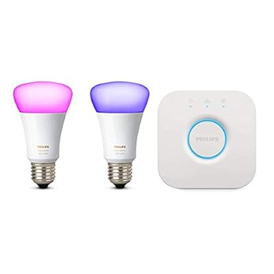 Philips Hue White und Color Ambiance E27 LED Lampe Starter Set, zwei Lampen 4. Generation, dimmbar, steuerbar via App…