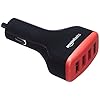 AmazonBasics - Kfz-Ladegerät für Apple- & Android-Geräte, USB-Anschluss: 4 Eingänge, 9,6 Ampere / 48W, Schwarz / Rot