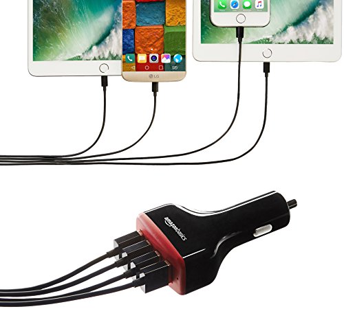 USB-Akkuladegerät zugunsten das Auto anhand 4 Eingänge; 48 Watt; Gleichstrom-Zwischenteil; zum Aufladen von bis zu 4 Geräten gleichzeitig – ideal zugunsten Handys, Tablets und Auswahlmöglichkeit Geräte
