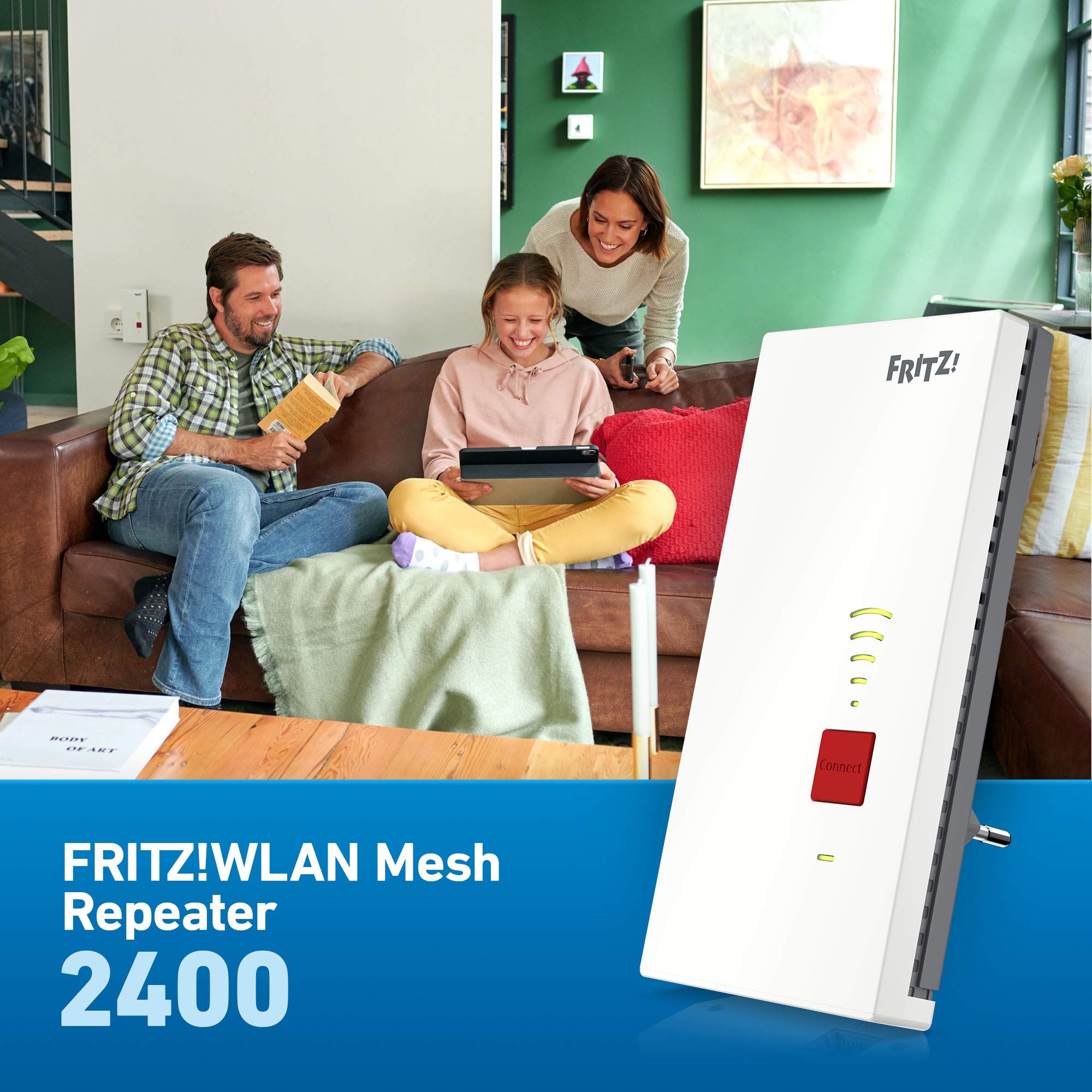 Lieferumfang: FRITZ!Repeater 2400, LAN-Kabel, Installationsanleitung, Schuko-Passstück