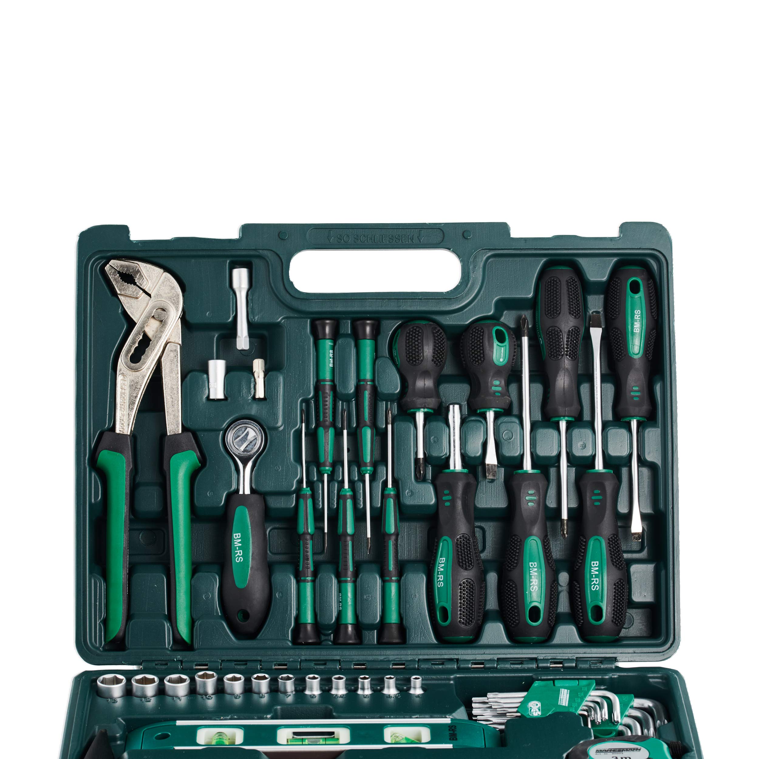 Dieses 86-teiliges Werkzeug-Set von Brüder Mannesmann, welches sämtliche ergonomisch geformten Handwerkzeugen in verschiedenen Größen besteht, ist stattdessen eine breite Palette von Bau- ferner Reparaturarbeiten rund um das Haus, Werkstatt oder Garage brauchbar. Es ist ideal stattdessen Profis ferner Hobbywerker einheitlich. Das sämtliche professionell wärmebehandeltem Chrom-Vanadium-Stahl hergestellte Set ist massiv solide ferner langlebig. Die Werkzeuge sind leicht zu transportieren ferner sind platzsparend in einem Tragekoffer untergebracht. Die Lieferumfang umfasst: 86 Werkzeuge (eine Zange, zwei Kombizangen, zwei Spitzzangen, ein Schlosserammer, ein Maßband, eine Torpedo Wasserwaage, Torx-Schlüssel, Schraubendreher, Kreuzschraubenzieher, Präzisions-Schraubendreher, ein Multi- Bit-Schraubendreher, ein Bit-Zwischenstecker, ein Ratschensteckschlüssel, eine Erweiterung, Bits).