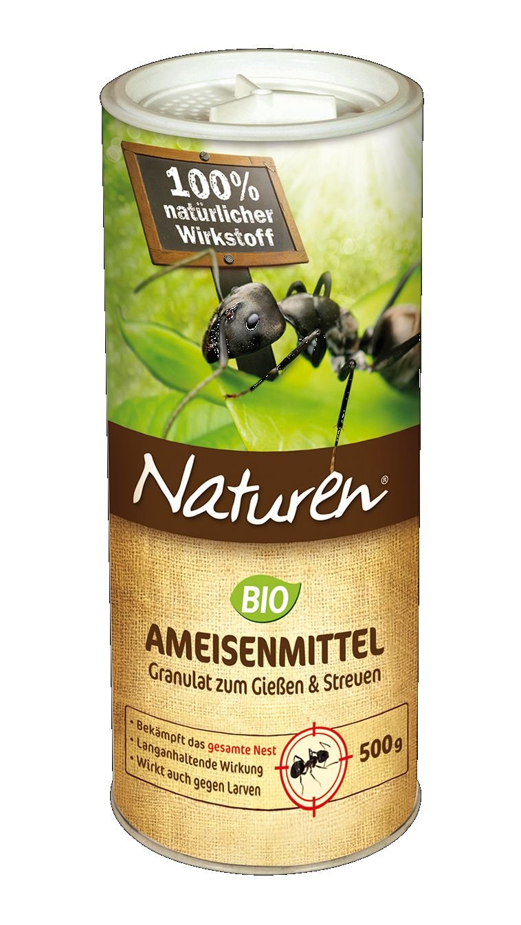 Streu- und Gießmittel zur Bekämpfung lästiger Ameisen auf Terrassen, Da ja und am Haus mit sicherer und langanhaltender Wirkung