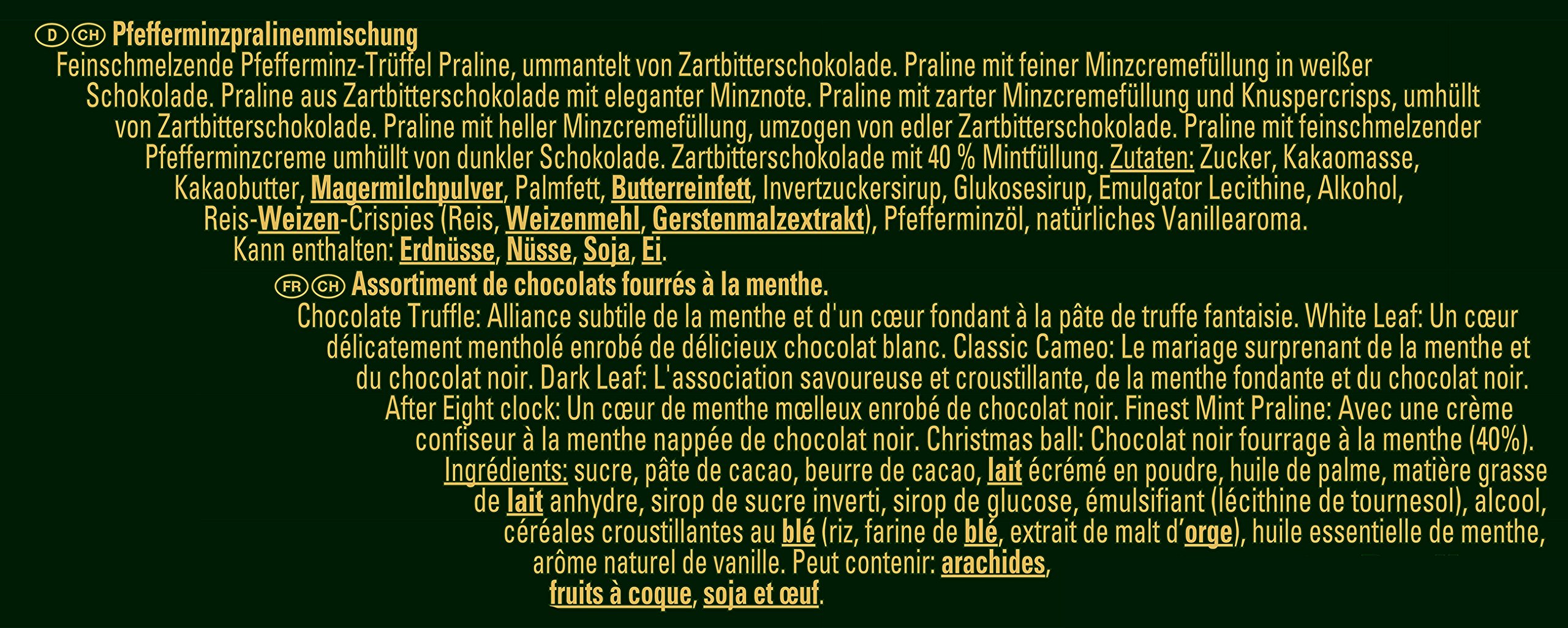 I’ll be back: AFTER EIGHT wird sowohl anspruchsvollen Genießern qua alias Naschkatzen gerecht und überzeugt durch feinschmelzende Zartbitterschokolade mit erfrischenden Minznoten.