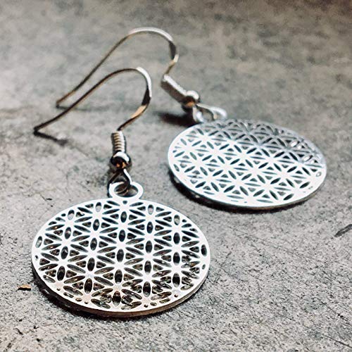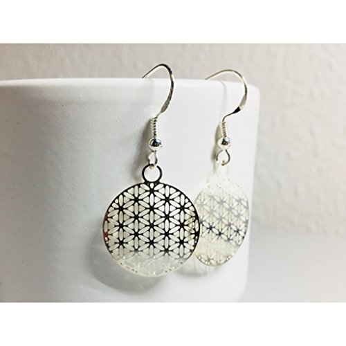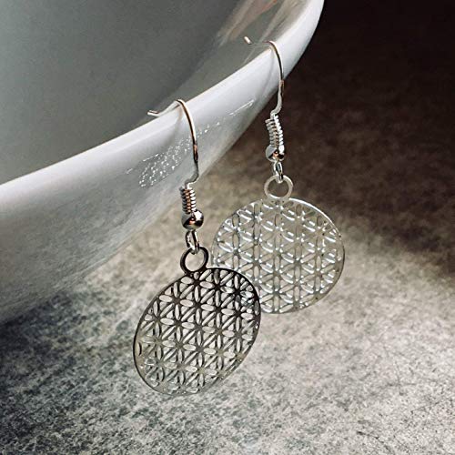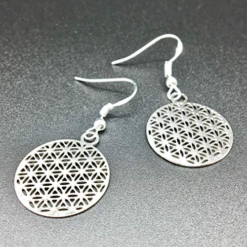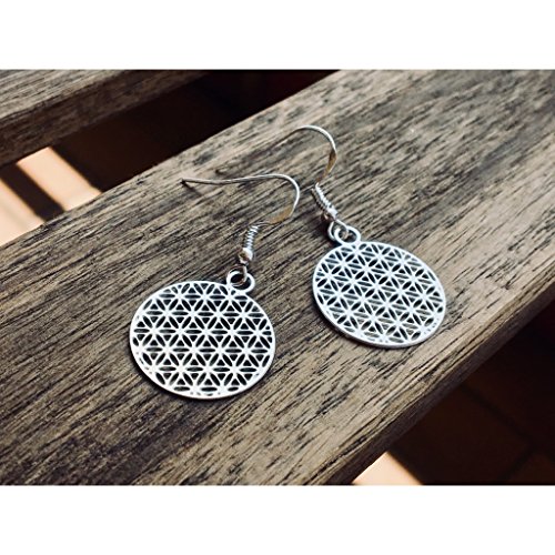 Handgemachte Ohrringe mit einem klaren Design einer Blume des Lebens. Die Blume des Lebens ist ein Ornament auf einem sechseckigen Gedichtabschnitt eines dreieckigen Gitters. Geschehen von Ornament in Architektur und Kunst. In der modernen Esoterik wird die Blume des Lebens wie Schutzamulett, zur „Einschaltung“ von Wasser, zur „Unterdrückung“ von Innenräumen und zum Abschirmung vor „Elektrosmog“ propagiert. Durchmesser ca. 20 mm. Die Kidney Ohrhaken sind jeglicher 925 Ag und mit Ohrstopper ausgestattet. Der Heiliger ist versilbert. Perfekter Tragekomfort zu leer Jahreszeit und zu verschiedenen Anlässen qua Geburtstage, Hochzeiten oder andere Events. Kann aka gerne wie Geschenk für geliebte Menschen vergeben werden.