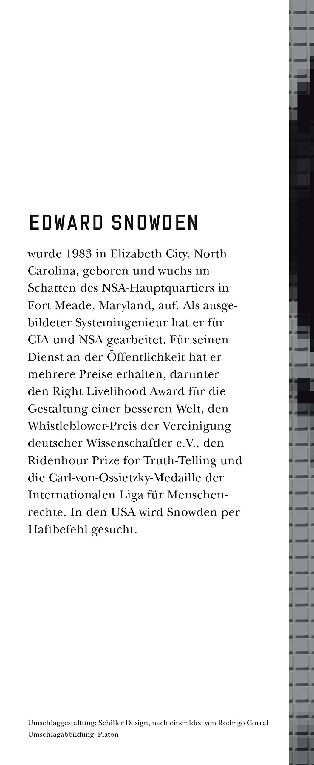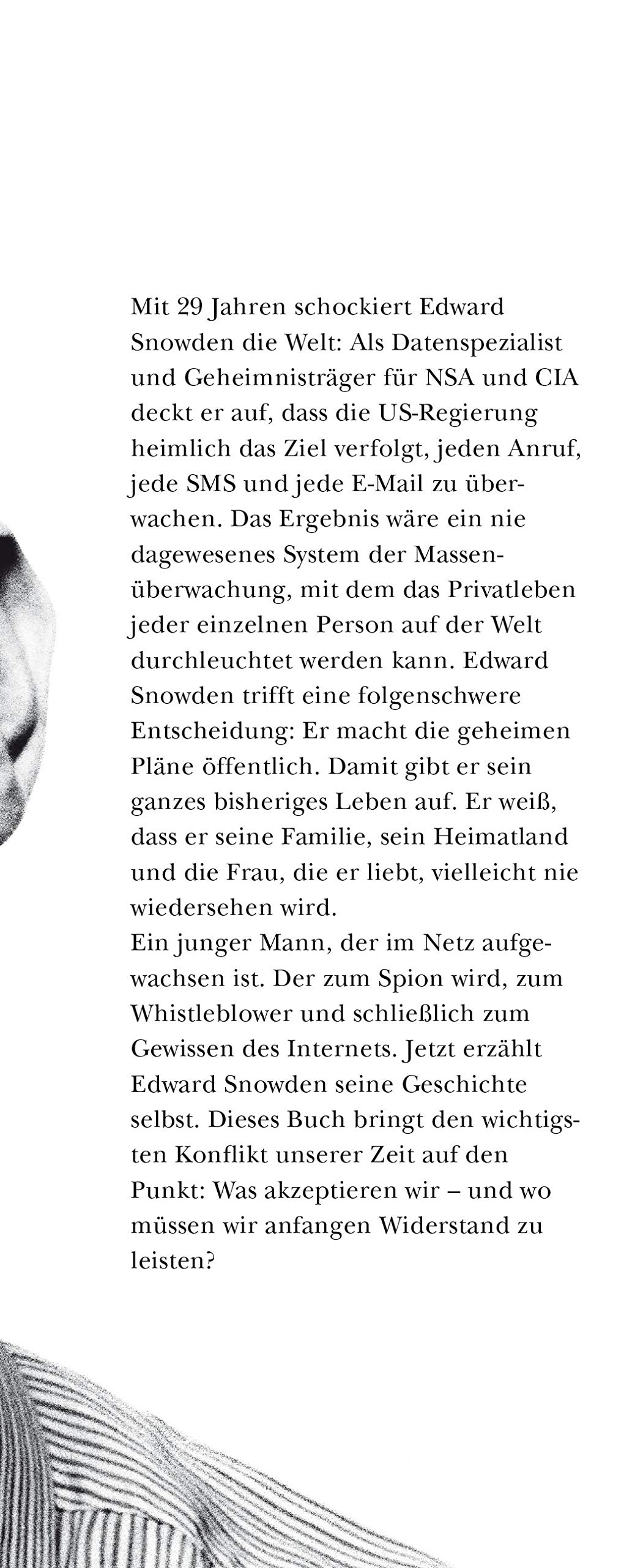 »Mein Name ist Edward Snowden. Sie halten dieses Buch in Händen, derweil ich etwas getan habe, das für einen Mann in meiner Position sehr gefährlich ist: Ich habe beschlossen, die Wahrheit zu sagen.«