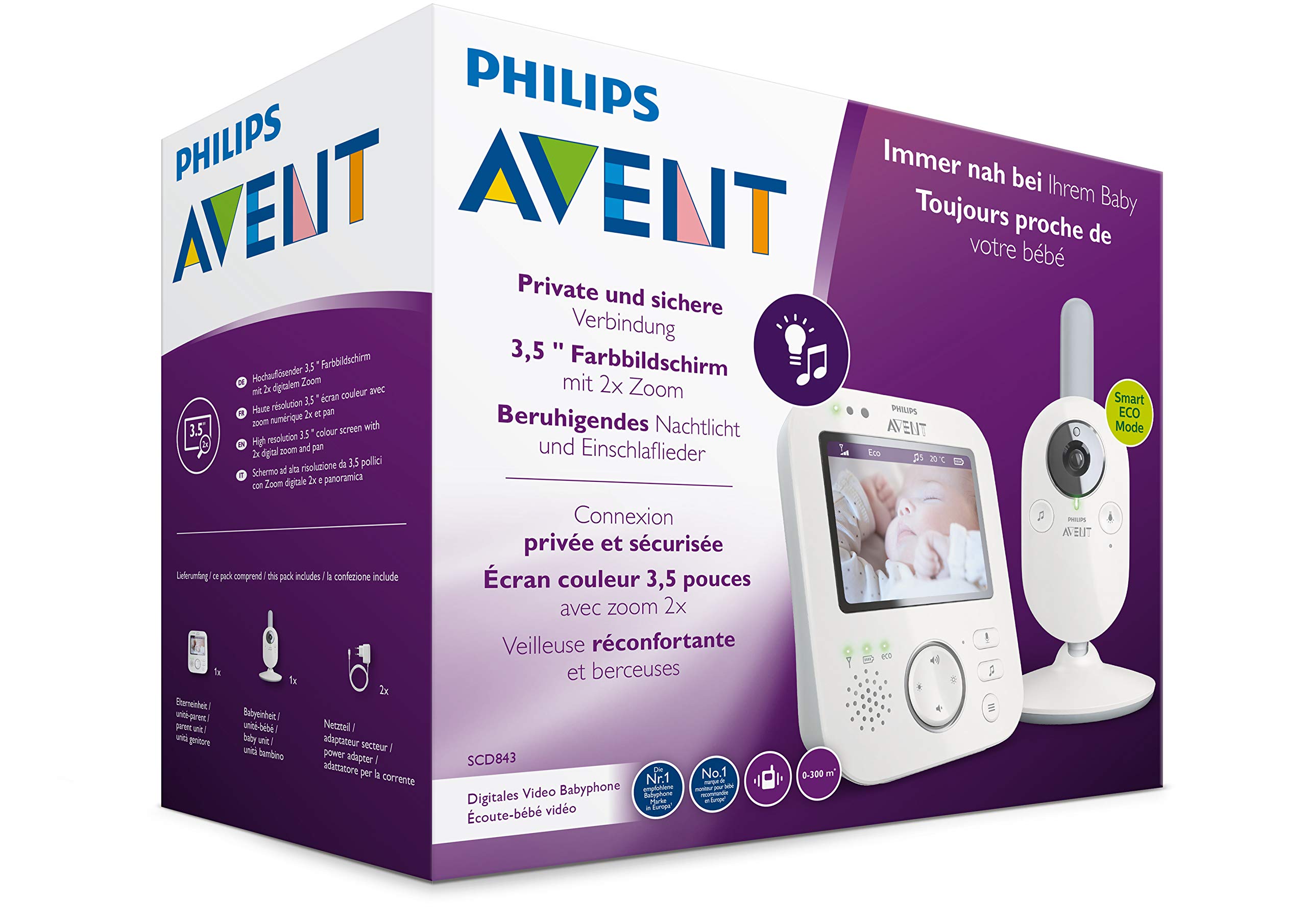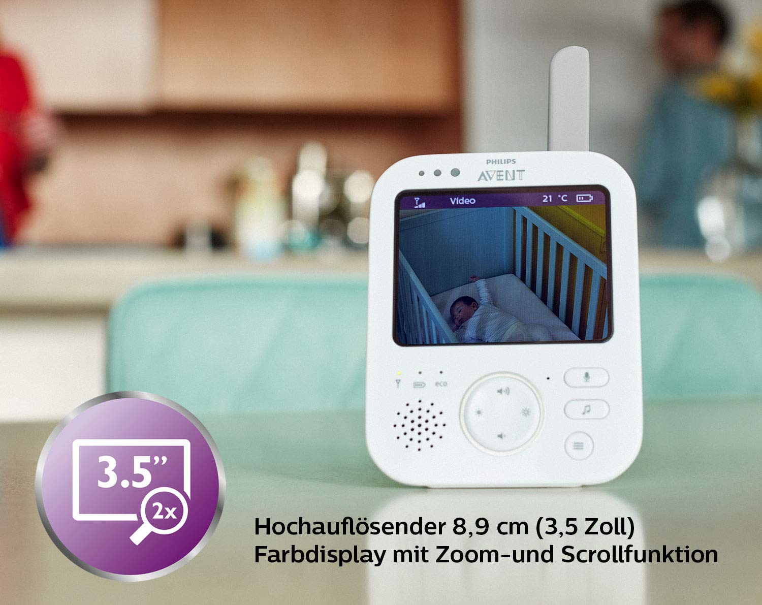 Energiesparender ECO-Typ durch Verbindungsanzeige, Nachtlicht, 5 Einschlaflieder, Gegensprechfunktion, Vibrationsalarm, Raumtemperaturmessung