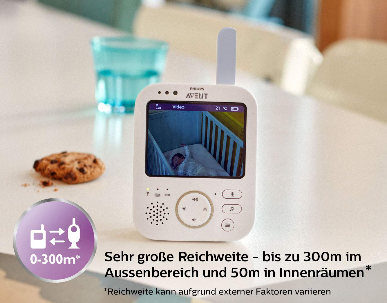 Allerbest große Reichweite (bis zu 300m im Aussenbereich/ bis zu 50m in Innenräumen) ansonsten 10 Stunden (Akkulaufzeit der Elterneinheit)