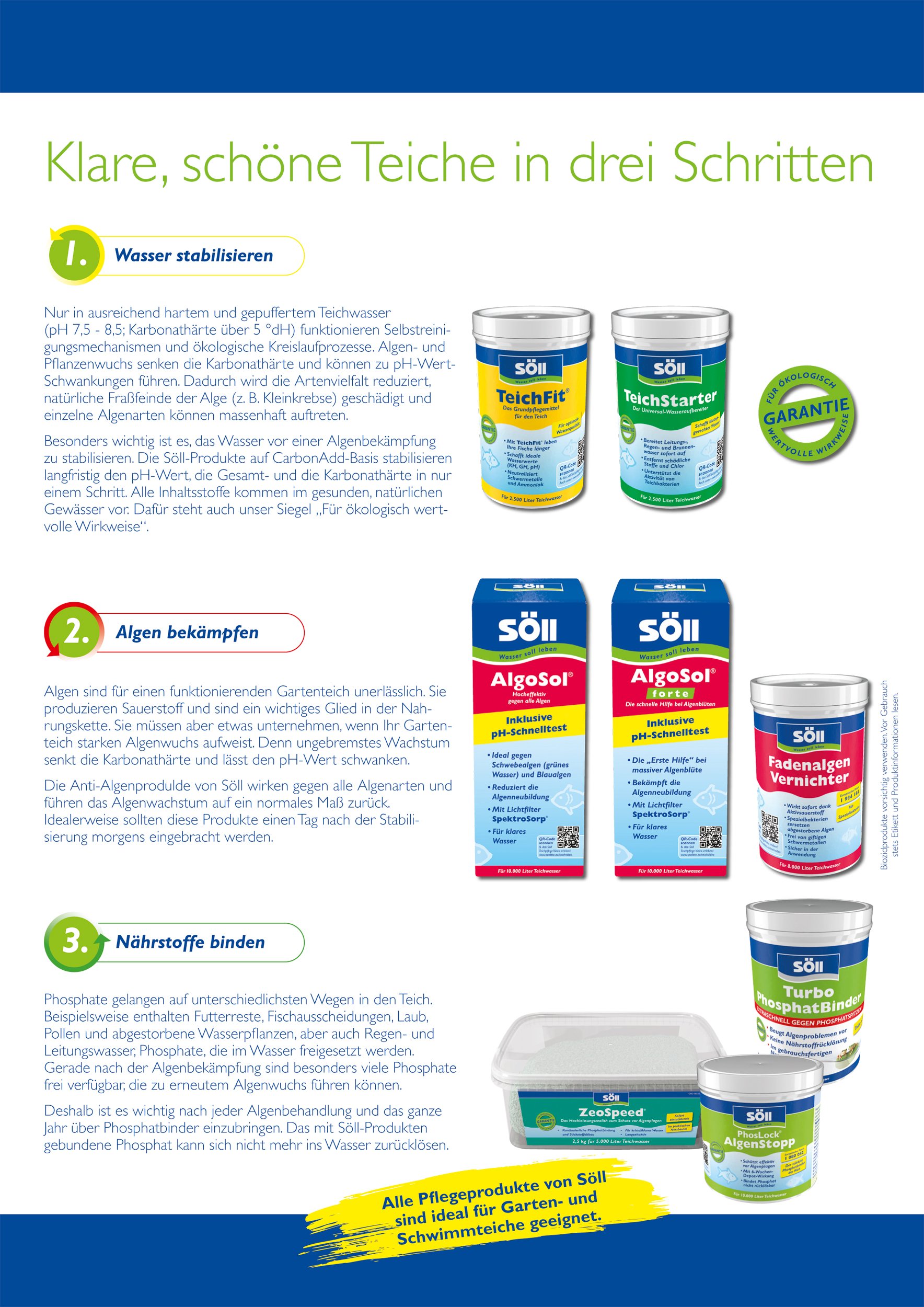 Bereits kurz nach der Anwendung können die abgestorbenen Algen abgekeschert werden. Verbleibende Algenreste werden im Zuge Spezialbakterien beschleunigt zersetzt.