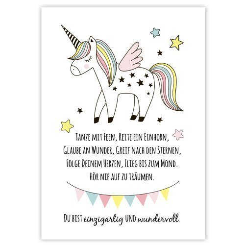 Einzigartiger, liebevoll designter Kunstdruck auf hochwertigem Fine-Art Künstlerpapier mittels Einhorn Motiv / Götze.