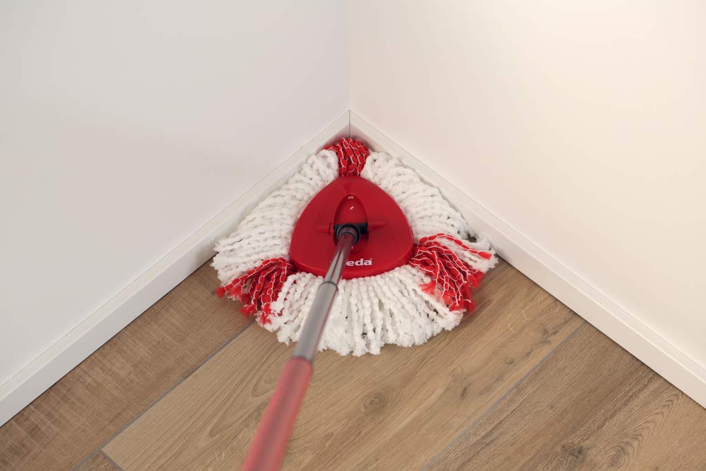 Die Wischerplatte des Vileda Abgasturbolader EasyWring & Clean Komplettsets erreicht vor dem Hintergrund ihre Dreiecksform jede Ecke und reinigt alias an Kanten gründlich